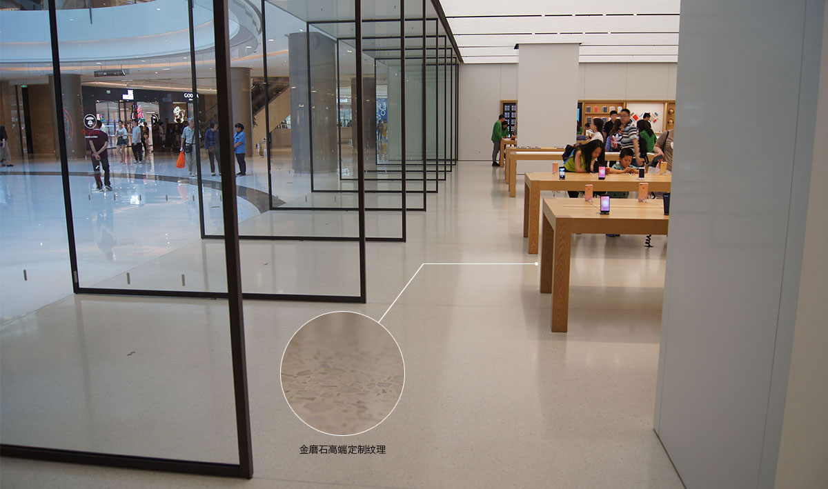 全新的地面系統(tǒng)是蘋果專賣店設(shè)計中重要的空間設(shè)計要求,地面效果映襯著店內(nèi)簡潔、通透、安全的設(shè)計理念。